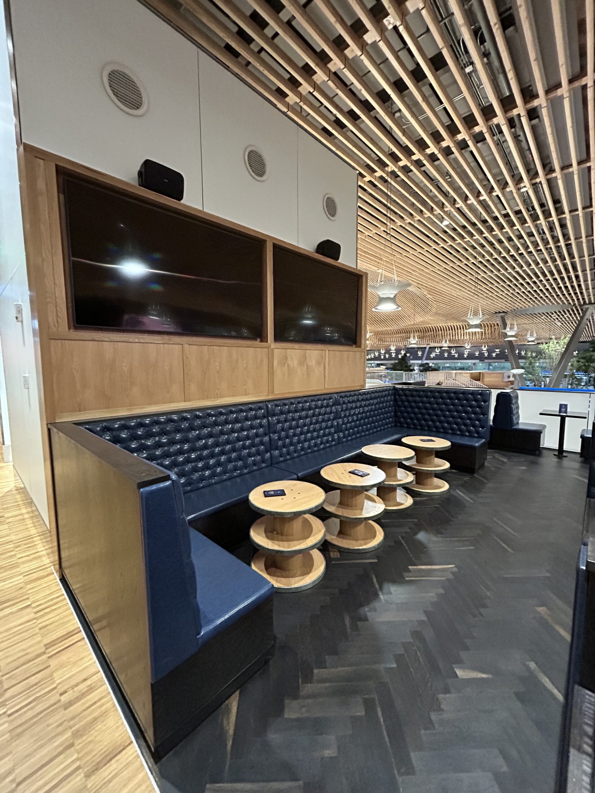 Building and installing the interior space of this high-end beer hall, as well as its hidden speakeasy, was no easy feat. Working in high security environments required an extra layer of professionalism and organization, managing onsite subs, endless loads of precious millworker, and ensuring the quality of installation that airport crowds demand.